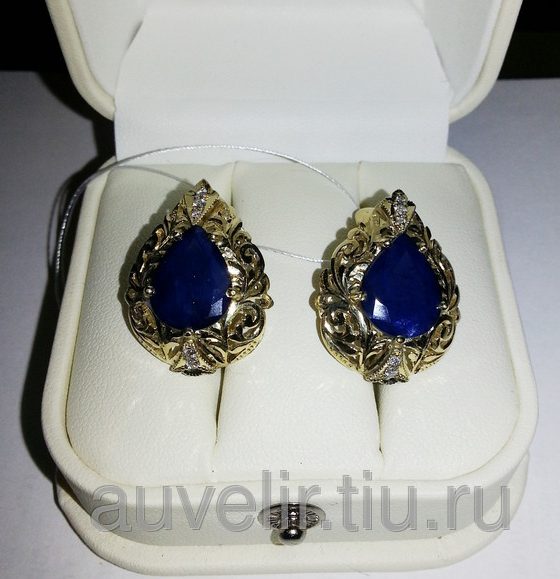 Серьги с сапфирами и бриллиантами «Шехерезада». Ручная работа. -