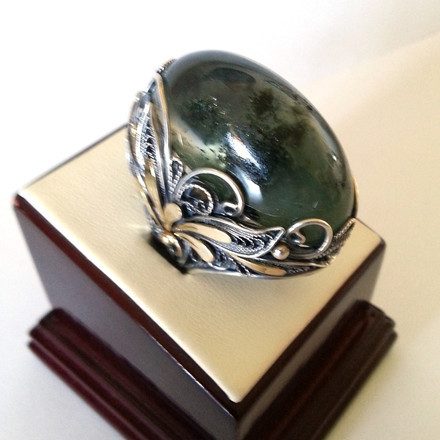 Кольцо из серебра и золота со вставкой из празеолита с включениями эпифола «Водный мир». Ручная работа. -