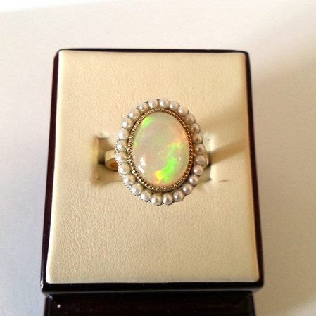 Кольцо из золота с натуральным опалом и жемчугом «Нежность» Ручная работа. -