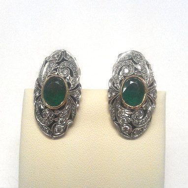 Серьги из золота с бриллиантами и изумрудами. Ручная работа. -