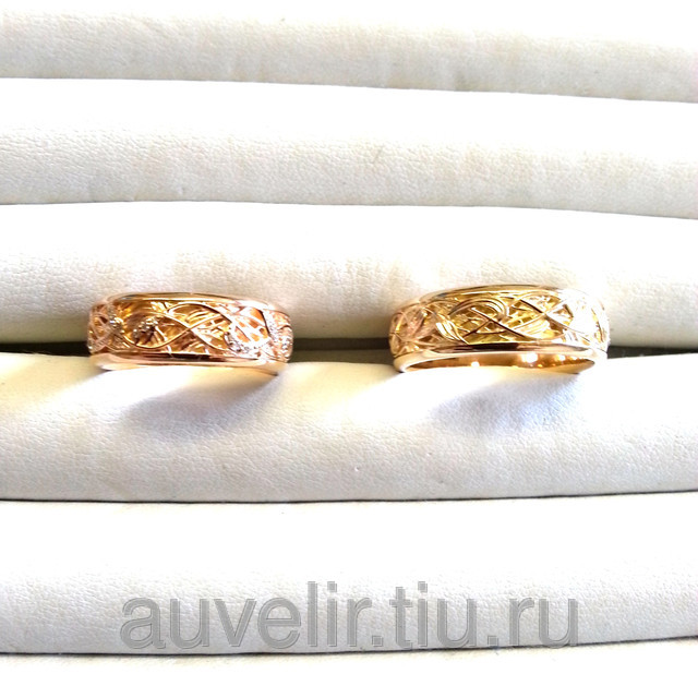 Обручальные кольца с растительным узором. Женское кольцо с бриллиантами. -