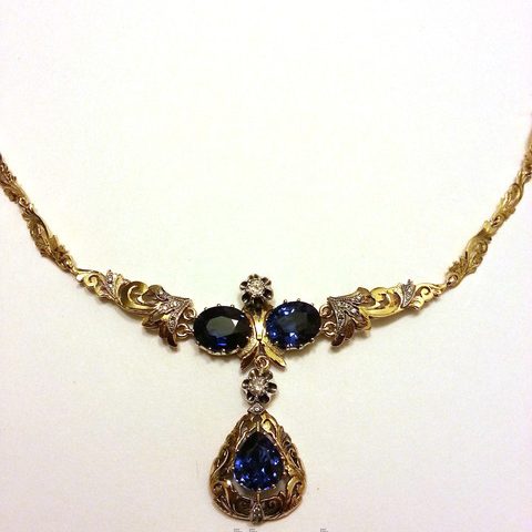 Колье из золота с бриллиантами и сапфирами. Ручная работа. -