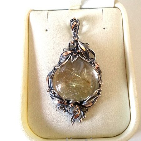 Подвеска из серебра с золотыми элементами. Вставка — волосатик. -