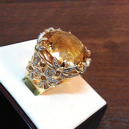 Кольцо из золота с бриллиантами и цитринами. Ручная работа. -