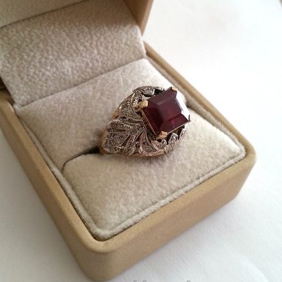 Кольцо из золота с бриллиантами и рубином. Ручная работа. -