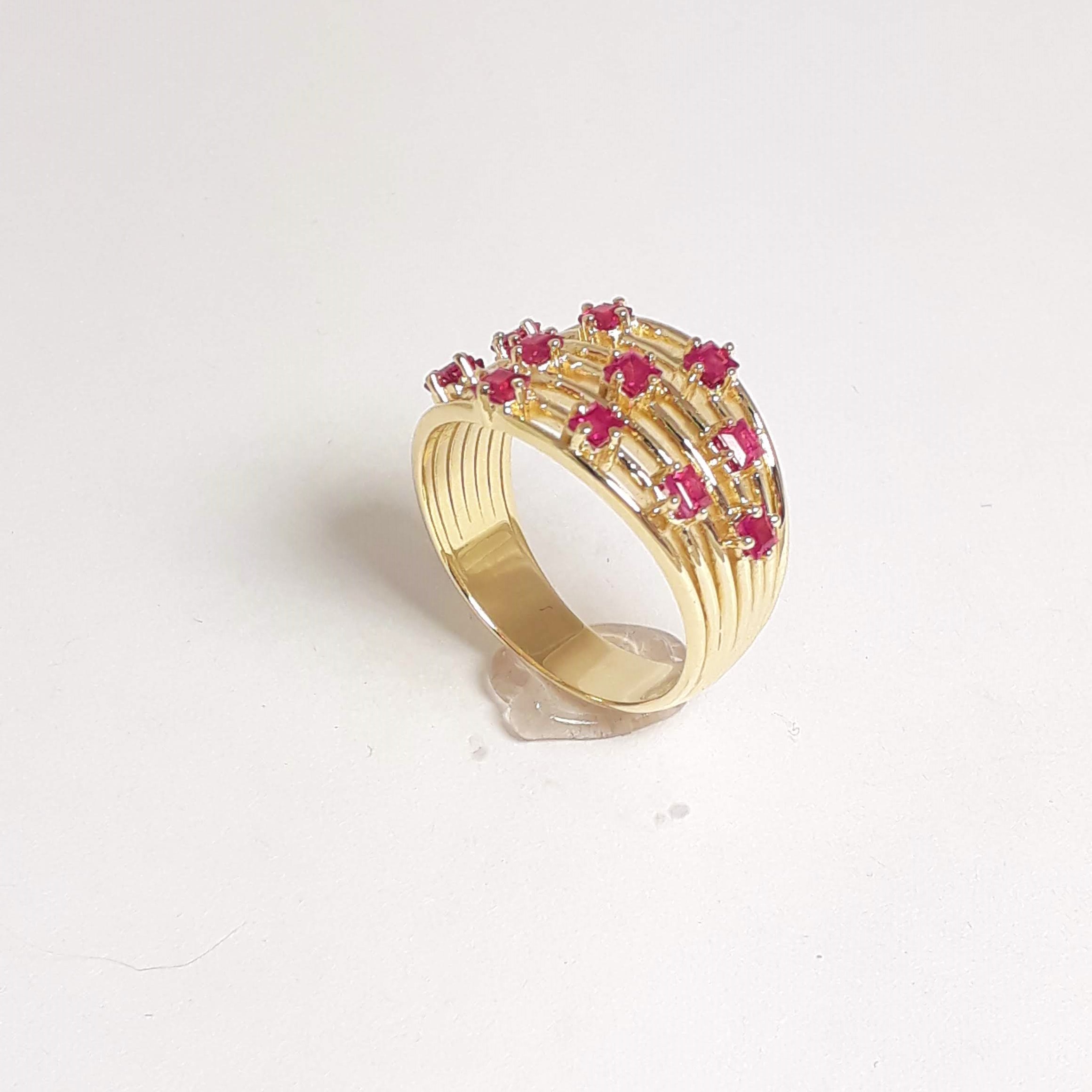 Кольцо из золота 585 пробы желтого цвета с рубинами квадратной огранки -